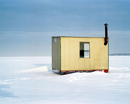 "My photographs play on the tension between water and ice, nature and culture, and the notion of change. This community gathers on the ice every winter, knowing their tradition is temporary because of spring and more recently, because of environmental change."