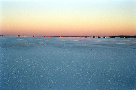 Helen says the lake has a sense of immediacy to it. The small community of fishing huts surrounded by the haunting expanse of snow and ice is short-lived.